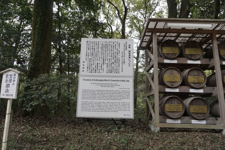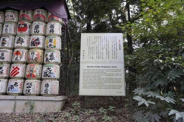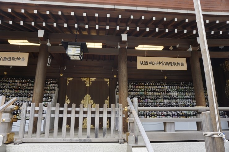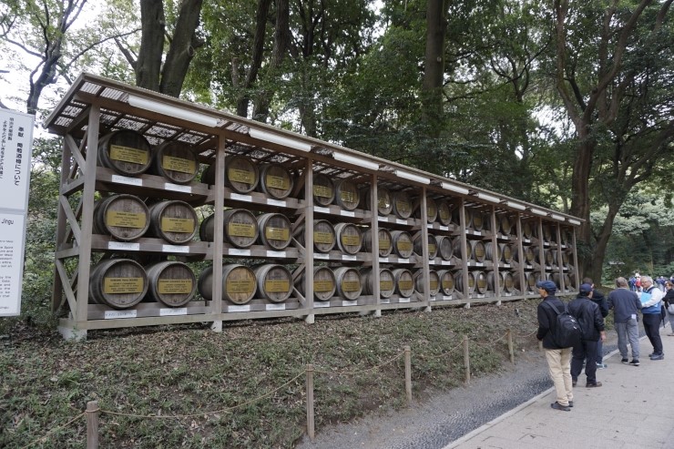 신궁입구에는 신궁에 헌납한 각종 사케(왼쪽은 와인) 주조회사 이름이 적힌 바구니가 줄지어 달려 있는게 조금은 촌스럽게 보인다.