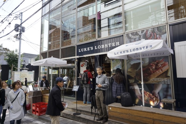 오모테산도 거리를 구경하다 보니 11시30분이 다 되어 간다. 배가 출출하여 간식거리로 루쿠스랍스터(LUKE'S LOBSTER) 가게를 찾으려니 구글 지도가 동작이 느려 한참 골목을 돌다가 어렵게 가게를 찾는다.