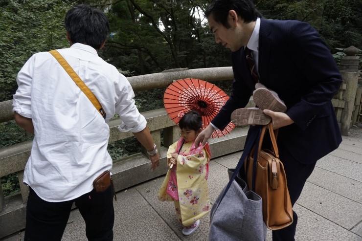 신궁 들어가는 길 양쪽으로 고송들이 줄지어 서 있다. 기모노 차림의 어린이 모습이 너무 깜찍스러워 사진에 담아본다.