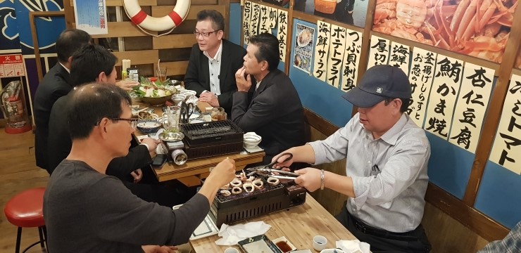 여러가지 회와 구이를 시켜 도쿄에서의 마지막 밤의 추억을 만들어 간다.