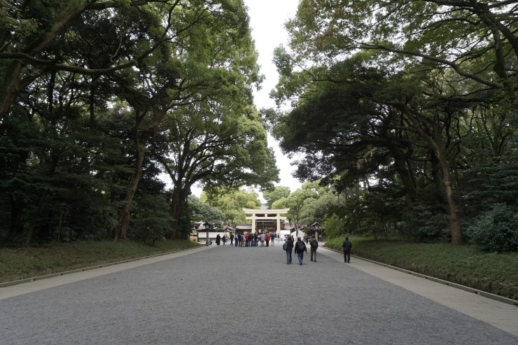 두번째 도리이를 들어서니 본관 건물로 향하는 길이 시작된다. 지금은 국화(菊花)의 계절이어서 인지 일본 왕실을 상징하는 국화전시회가 열리는 모양이다.